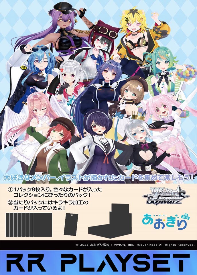This will come with 4 copies of all of the following rarities: C/U/R/CC/CR/RR from the “Aogiri High School” Weiss Schwarz booster set. This pre-order also includes a complimentary playset of the trial deck from the coinciding trial deck release.