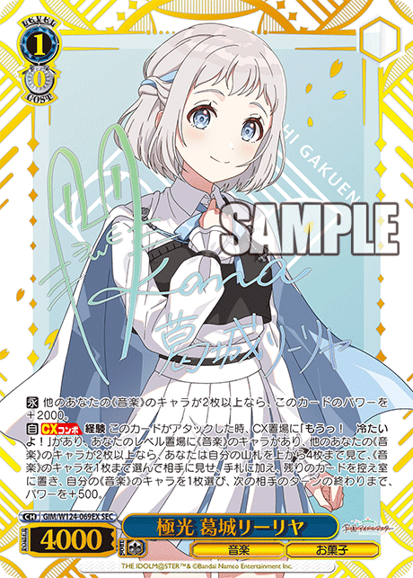 【自】【CXコンボ】 経験 このカードがアタックした時、CX置場に「もうっ! 冷たいよ!」があり、あなたのレベル置場に《音楽》のキャラがあり、他のあなたの《音楽》のキャラが2枚以上なら、あなたは自分の山札を上から4枚まで見て、《音楽》のキャラを1枚まで選んで相手に見せ、手札に加え、残りのカードを控え室に置き、自分の《音楽》のキャラを1枚選び、次の相手のターンの終わりまで、パワーを+500。