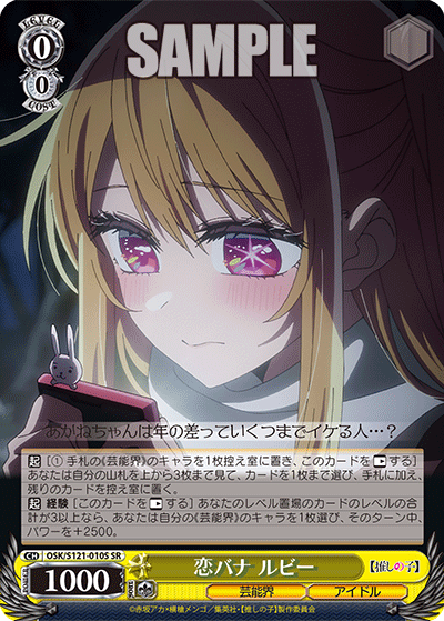 [S] – EXPERIENCE [REST this card] If the total Level of cards in your Level Zone is 3 or higher, choose one of your《Showbiz》Characters, during this turn, it gains +2500 Power.