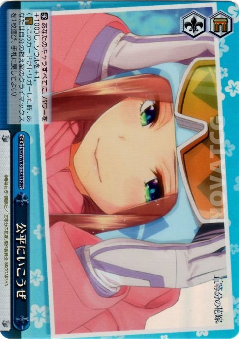 :このカードがトリガーした時、あなたは自分の控え室のクライマックスを1枚選び、手札に戻してよい)
