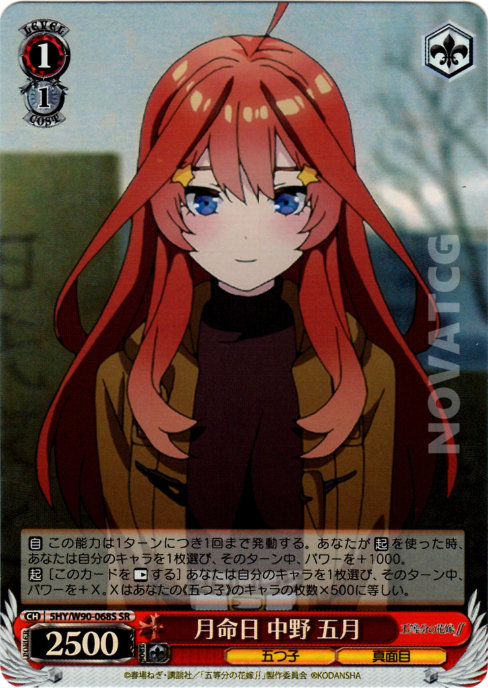 [S] – [REST this card] Choose one of your Characters, during this turn, it gains +X Power. X is the number of your《Quintuplets》Characters x500.