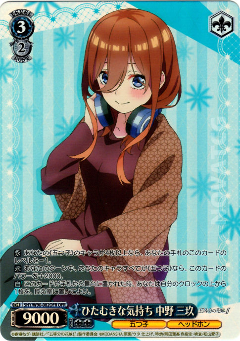 【永】 あなたのターン中、あなたのキャラすべてが《五つ子》なら、このカードのパワーを+2000。