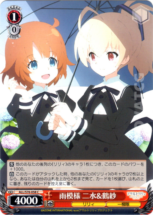 【永】 他のあなたの後列の《リリィ》のキャラ1枚につき、このカードのパワーを+1000。