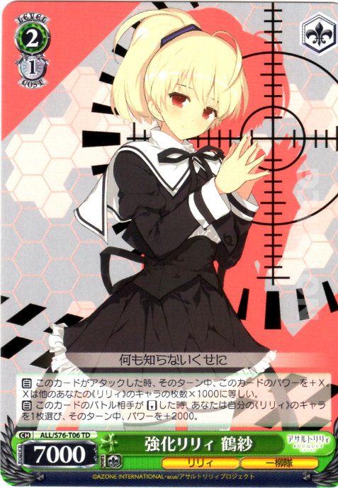 【自】 このカードがアタックした時、そのターン中、このカードのパワーを+X。Xは他のあなたの《リリィ》のキャラの枚数×1000に等しい。