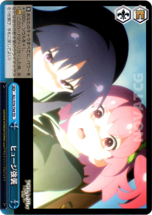 :このカードがトリガーした時、あなたは自分の控え室のクライマックスを1枚選び、手札に戻してよい)