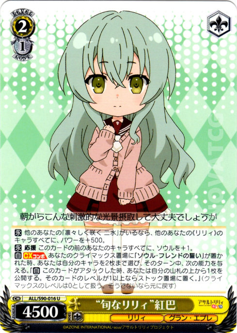 【永】 他のあなたの「凛々しく咲く 二水」がいるなら、他のあなたの《リリィ》のキャラすべてに、パワーを+500。