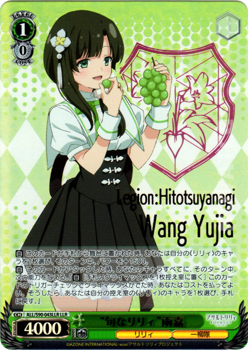 【自】 このカードが手札から舞台に置かれた時、あなたは自分の《リリィ》のキャラを1枚選び、そのターン中、パワーを+1500。