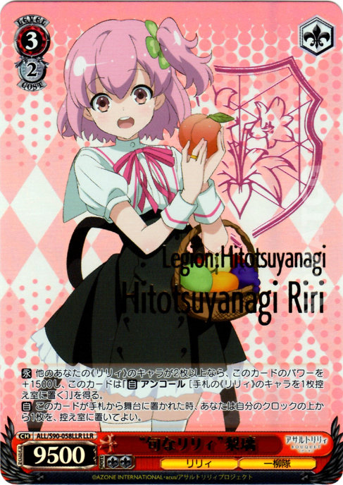 [C]- If you have two or more other《Lily》Characters, this card gains +1500 Power and [A] – ENCORE [Send one《Lily》Character from Hand to Waiting Room.
