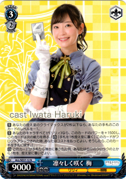 【自】 このカードが手札から舞台に置かれた時、あなたは自分のクロックの上から1枚を、控え室に置いてよい。