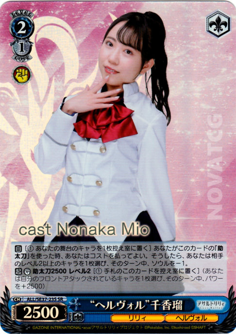 【起】【カウンター】 助太刀2500 レベル2 [(1) 手札のこのカードを控え室に置く] (あなたは自分のフロントアタックされているキャラを1枚選び、そのターン中、パワーを+2500)