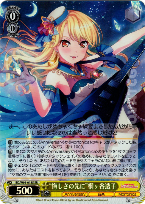 【自】 他のあなたの、《Anniversary》か《Morfonica》のキャラがアタックした時、そのターン中、このカードのパワーを+1000。