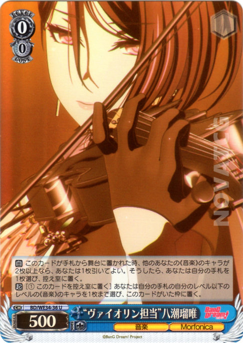 [A] – When this card is placed on Stage from Hand, if you have two or more other《Music》Characters, you may draw one card. If you did, choose one card in your Hand, send it to Waiting Room.