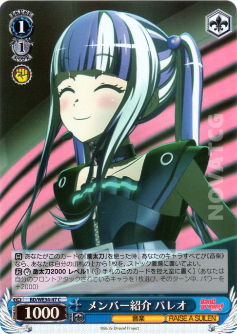 [A] – When you use this card’s BACKUP, if all of your Characters are《Music》, you may place the top card of your Deck into Stock.