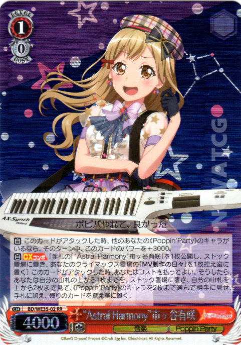 【自】【CXコンボ】[手札の「“Astral Harmony”市ヶ谷有咲」を1枚公開し、ストック置場に置き、あなたのクライマックス置場の「MV制作の日々」を1枚控え室に置く] このカードがアタックした時、あなたはコストを払ってよい。そうしたら、あなたは自分の山札の上から1枚までを、ストック置場に置き、自分の山札を上から2枚まで見て、《Poppin’Party》のキャラを2枚まで選んで相手に見せ、手札に加え、残りのカードを控え室に置く。