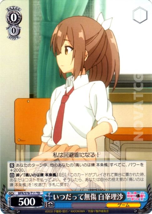 【永】 あなたのターン中、他のあなたの「痛いのは嫌 本条楓」すべてに、パワーを+2000。