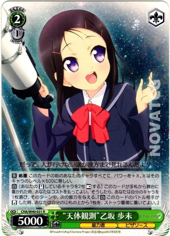 【永】 応援 このカードの前のあなたのキャラすべてに、パワーを+X。Xはそのキャラのレベル×500に等しい。
