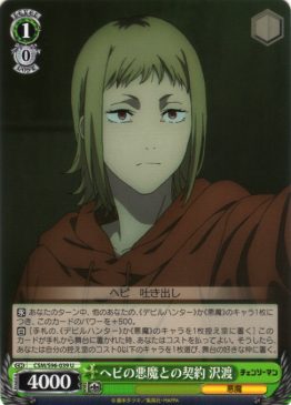 [A] – [(1) Send this card to Waiting Room] when your other《Devil Hunter》or《Devil》Character is Front Attacked, you may pay the cost. If you did, return that Character to Hand.