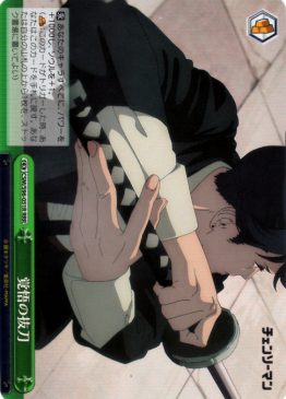 [A] – When this card is placed on Stage from Hand, if you have four or more other《Devil Hunter》or《Public Safety》Characters, you may choose one《Devil Hunter》or《Public Safety》Character in your Waiting Room, send it to Stock.