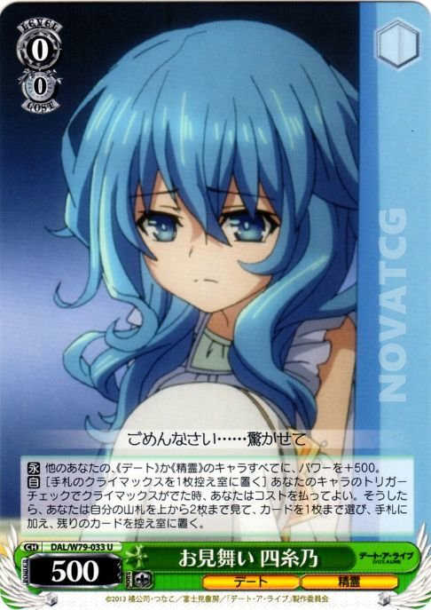【永】 他のあなたの、《デート》か《精霊》のキャラすべてに、パワーを+500。