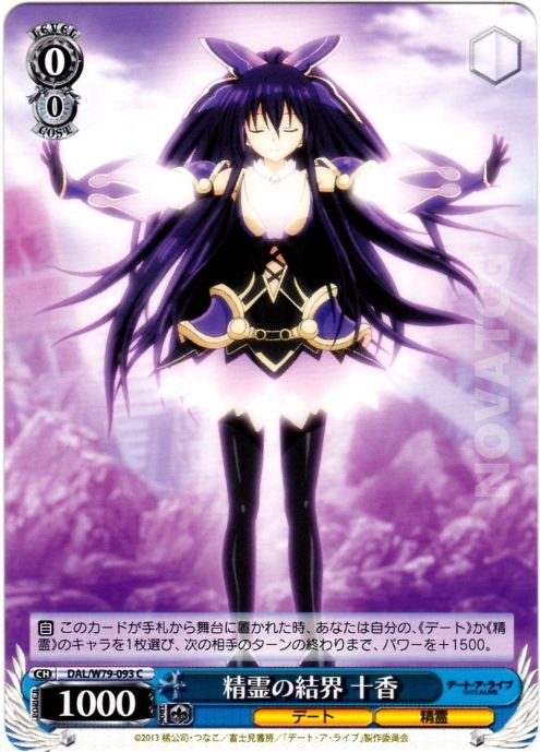 【自】 このカードが手札から舞台に置かれた時、あなたは自分の、《デート》か《精霊》のキャラを1枚選び、次の相手のターンの終わりまで、パワーを+1500。