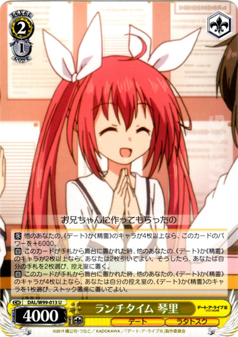 [C] – If you have four or more other《Date》or《Celestial Spirit》Characters, this card gains +6000 Power.