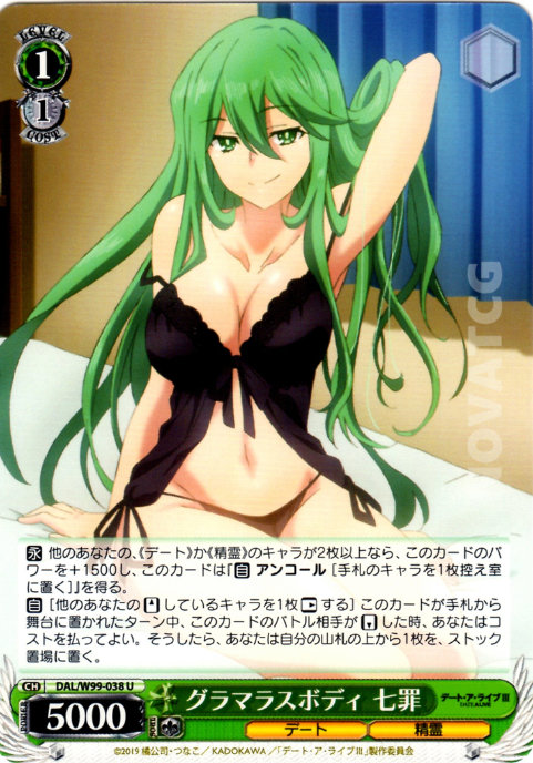 【永】 他のあなたの、《デート》か《精霊》のキャラが2枚以上なら、このカードのパワーを+1500し、このカードは『【自】 アンコール [手札のキャラを1枚控え室に置く]』を得る。