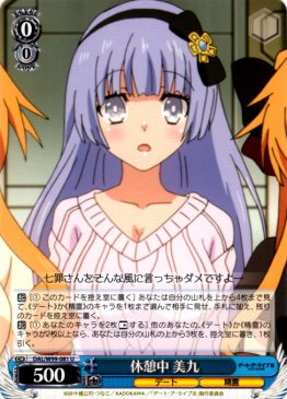 All players flip the top three cards of their Deck, send them to Waiting Room. If the total Power of all of your Characters sent to Waiting Room by this card’s effect is greater than or equal to the total Power of all your opponent’s Characters sent to Waiting Room by this card’s effect, choose up to two《Date》or《Celestial Spirit》Characters in your Waiting Room, add them to Hand.