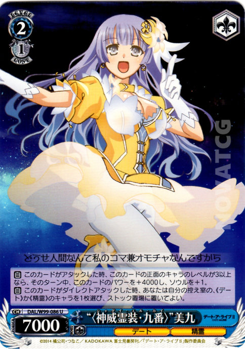 [A] – When this card Direct Attacks, you may choose one《Date》or《Celestial Spirit》Character in your Waiting Room, send it to Stock.