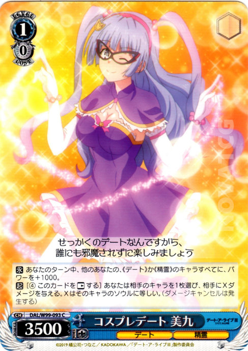 【永】 あなたのターン中、他のあなたの、《デート》か《精霊》のキャラすべてに、パワーを+1000。