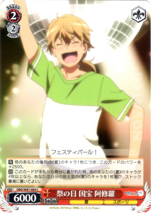 【永】 他のあなたの後列の《夏》のキャラ1枚につき、このカードのパワーを+2500。
