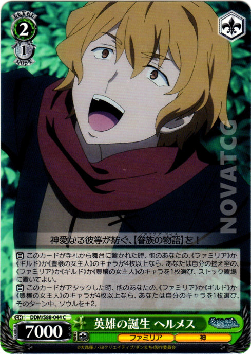 【自】 このカードがアタックした時、他のあなたの、《ファミリア》か《ギルド》か《豊穣の女主人》のキャラが4枚以上なら、あなたは自分のキャラを1枚選び、そのターン中、ソウルを+2。