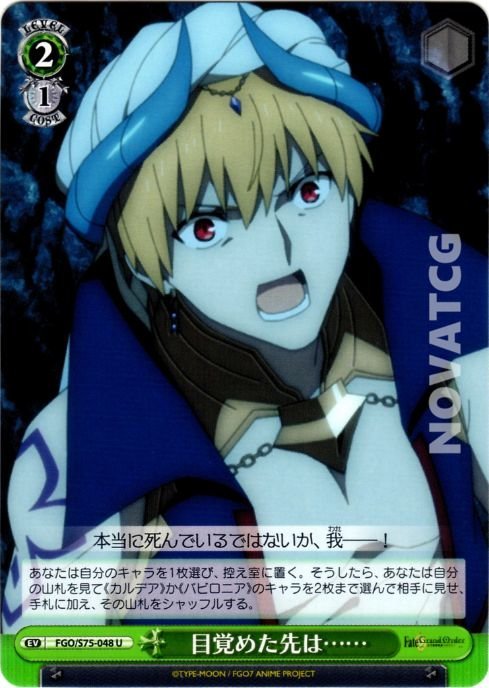 あなたは自分のキャラを1枚選び、控え室に置く。そうしたら、あなたは自分の山札を見て《カルデア》か《バビロニア》のキャラを2枚まで選んで相手に見せ、手札に加え、その山札をシャッフルする。