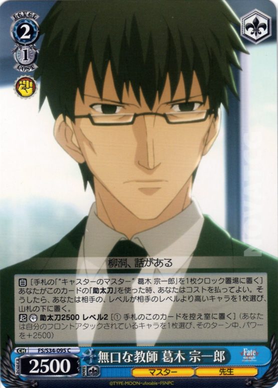 [A] [Send a ‘”Caster’s Master” Souichirou Kuzuki’ from hand to clock] When you use this card’s BACKUP, you may pay the cost. If you do select 1 of your opponent’s characters that is higher level than your opponent’s current level, send it to the bottom of the opponent’s deck.