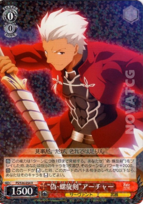 【自】 この能力は1ターンにつき1回まで発動する。あなたが「“偽・螺旋剣”」をプレイした時、あなたは自分のキャラを1枚選び、そのターン中、パワーを+2000。