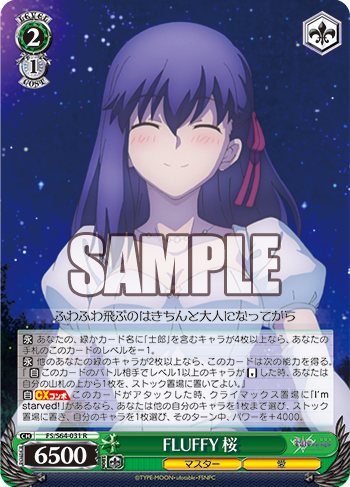 【永】 あなたの、緑かカード名に「士郎」を含むキャラが4枚以上なら、あなたの手札のこのカードのレベルを-1。