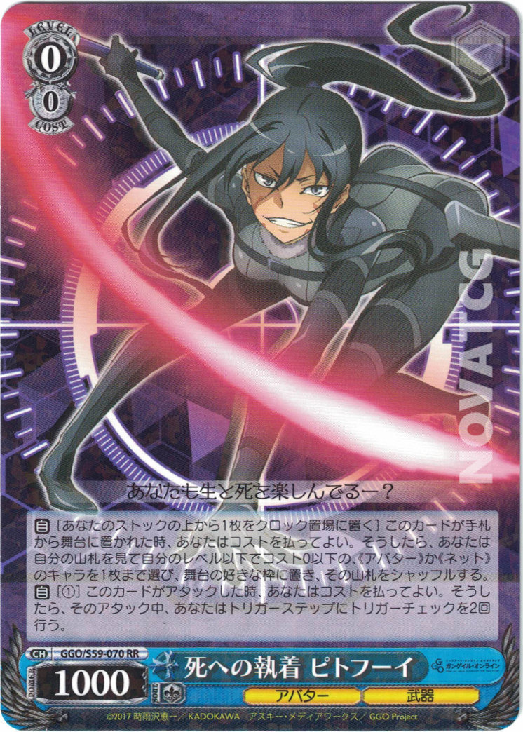 【自】[あなたのストックの上から1枚をクロック置場に置く] このカードが手札から舞台に置かれた時、あなたはコストを払ってよい。そうしたら、あなたは自分の山札を見て自分のレベル以下でコスト0以下の、《アバター》か《ネット》のキャラを1枚まで選び、舞台の好きな枠に置き、その山札をシャッフルする。