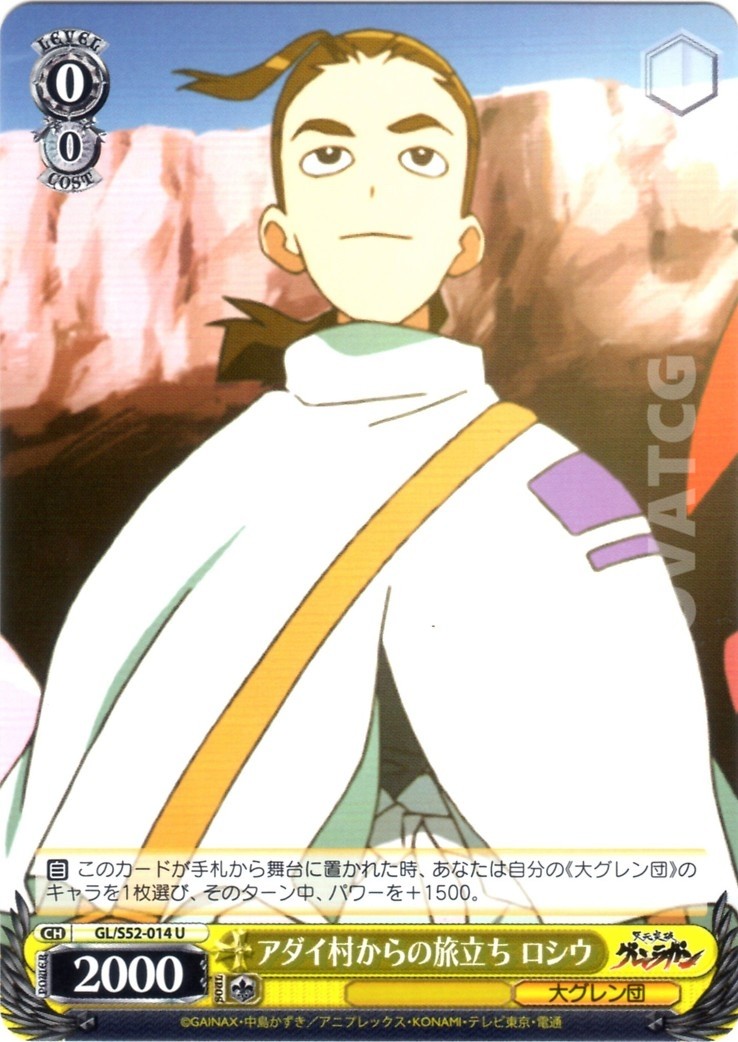 【自】 このカードが手札から舞台に置かれた時、あなたは自分の《大グレン団》のキャラを1枚選び、そのターン中、パワーを+1500。