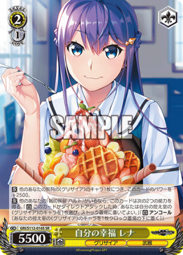 [A] – [(1) Send one card from Hand to Waiting Room] When this card is placed on Stage from Hand, you may pay the cost. If you did, search your Deck for up to one《Grisaia》Character, reveal it to your opponent, add it to Hand, shuffle your Deck afterwards.