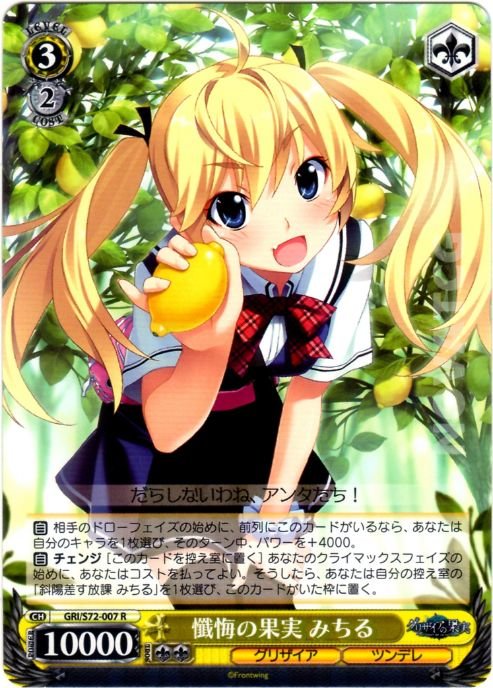 [A] CHANGE [Send this card to the waiting room] At the beginning of your climax phase, you may pay the cost. If you do, target 1 “GRI/S72-059” in your waiting room, play it where this card was.
