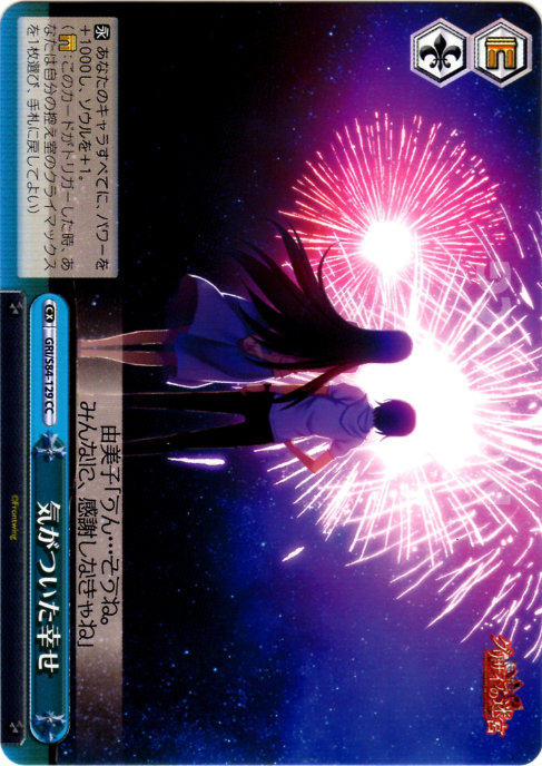 :このカードがトリガーした時、あなたは自分の控え室のクライマックスを1枚選び、手札に戻してよい)
