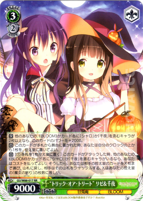 【永】 他のあなたの、《BLOOM》かカード名に「シャロ」か「千夜」を含むキャラが2枚以上なら、このカードのパワーを+2000。