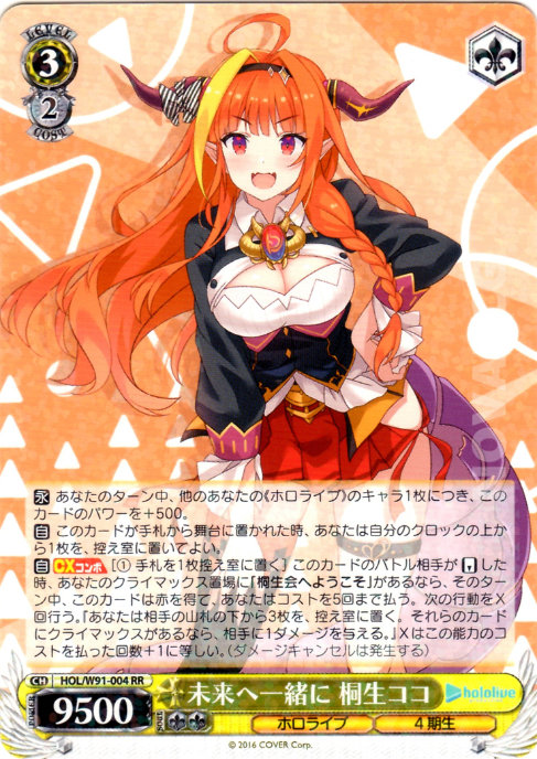 【永】 あなたのターン中、他のあなたの《ホロライブ》のキャラ1枚につき、このカードのパワーを+500。
