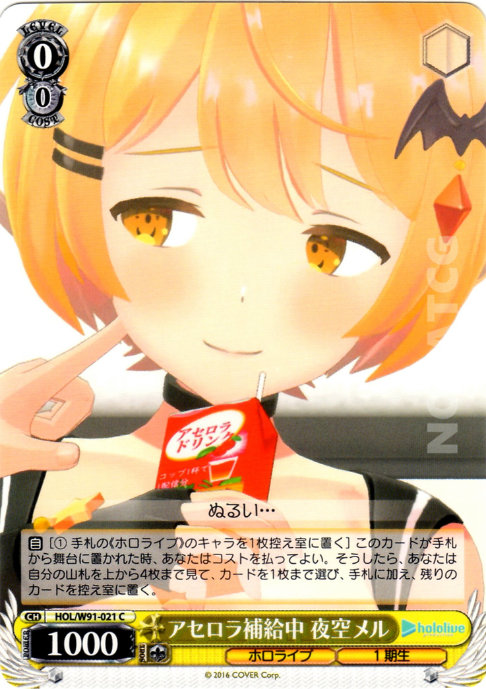 [A] – [(1) Place one «Hololive» Character from Hand to Waiting Room] When this card is placed on Stage from Hand, you may pay the cost. If you did, look at up to four cards from the top of your Deck, choose one card, add it to Hand, send the remaining cards to Waiting Room.