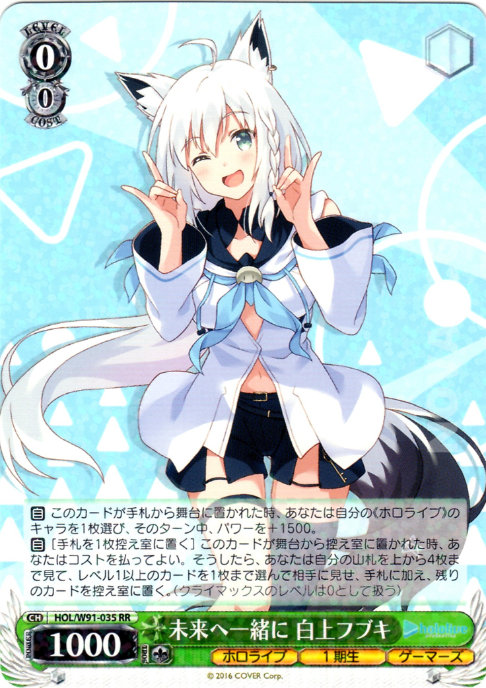 【自】 このカードが手札から舞台に置かれた時、あなたは自分の《ホロライブ》のキャラを1枚選び、そのターン中、パワーを+1500。