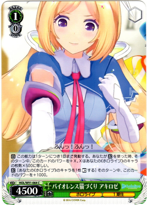 【自】 この能力は1ターンにつき1回まで発動する。あなたが【起】を使った時、そのターン中、このカードのパワーを+X。Xはあなたの《ホロライブ》のキャラの枚数×500に等しい。