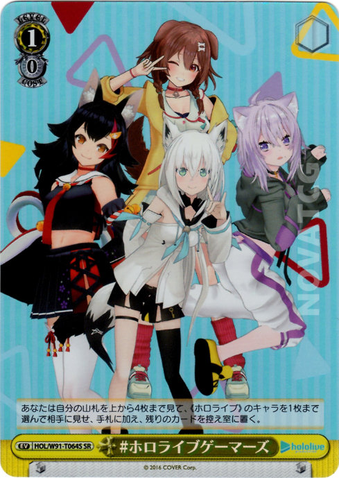 Look at up to four cards from the top of your Deck, choose up to one «Hololive» Character among them, show it to your opponent, add it to Hand, send the remaining cards to Waiting Room.