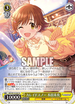 [A] – When this card attacks, if you have another Blue Character, reveal the top card of your Deck. If that card is a Level 2 or higher card or [エターナルブルーム 渋谷凛], send that card to Stock. (Climax is considered Level 0. If not return card to its original position)