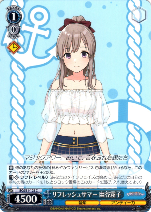 【永】 他のあなたの後列の「秘めやかファンサービス 白瀬咲耶」がいるなら、このカードのパワーを+2000。