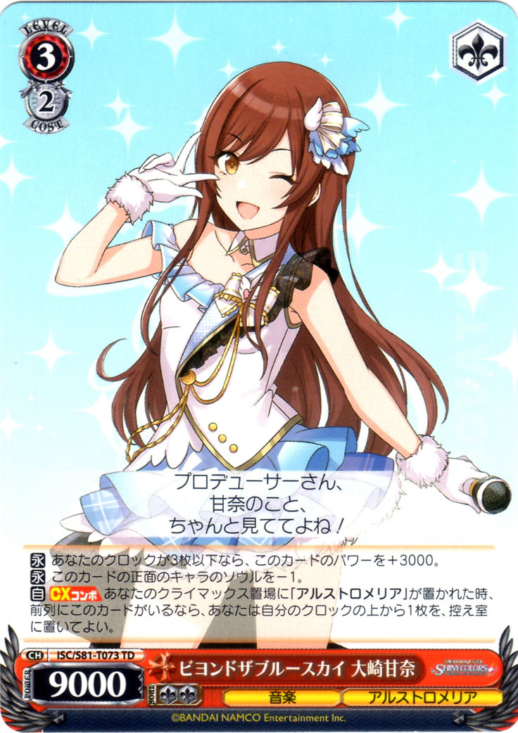 【自】【CXコンボ】 あなたのクライマックス置場に「アルストロメリア」が置かれた時、前列にこのカードがいるなら、あなたは自分のクロックの上から1枚を、控え室に置いてよい。