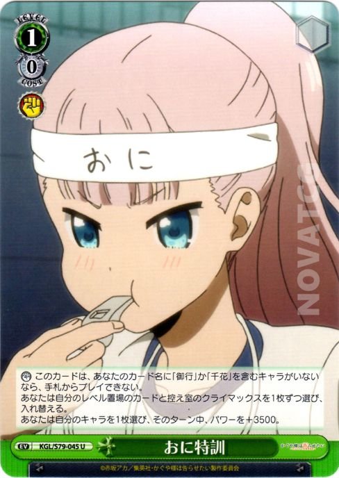 【カウンター】 このカードは、あなたのカード名に「御行」か「千花」を含むキャラがいないなら、手札からプレイできない。